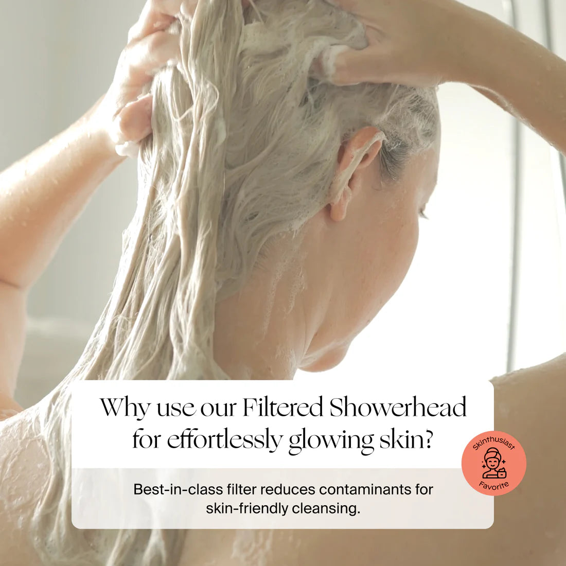 Pro-stylist recommended easy-to-install handheld filtered showerhead reduces chlorine and other contaminants for clean water that supports healthy-looking skin and hair. Includes a scalp massager faceplate for a spa-like shower and refreshed, happy scalp.